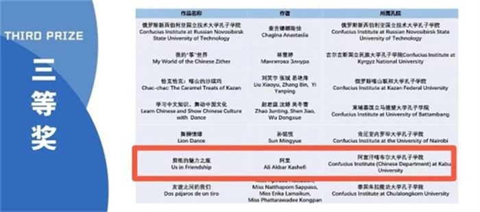 阿富汗喀布尔大学孔子学院在“最·孔院”全球短视频征集活动中喜获佳绩