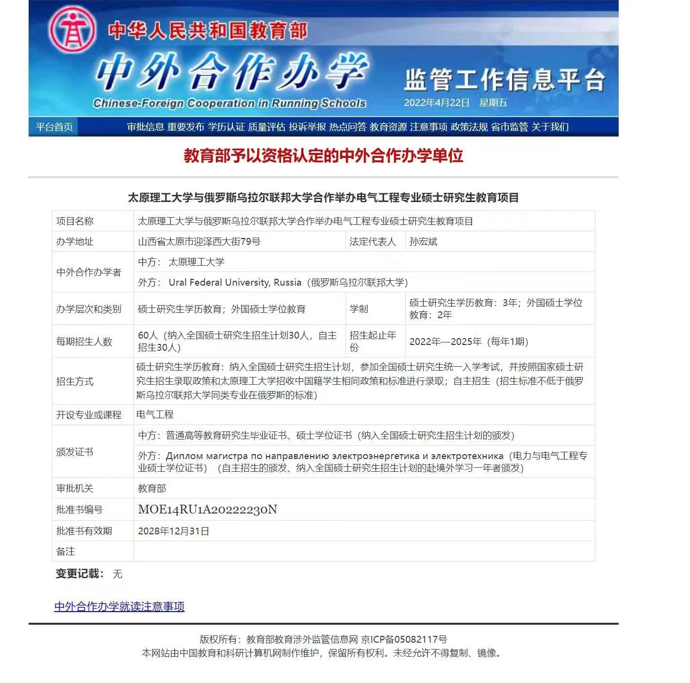我校与俄罗斯乌拉尔联邦大学合作举办电气工程专业硕士研究生教育项目获教育部批准