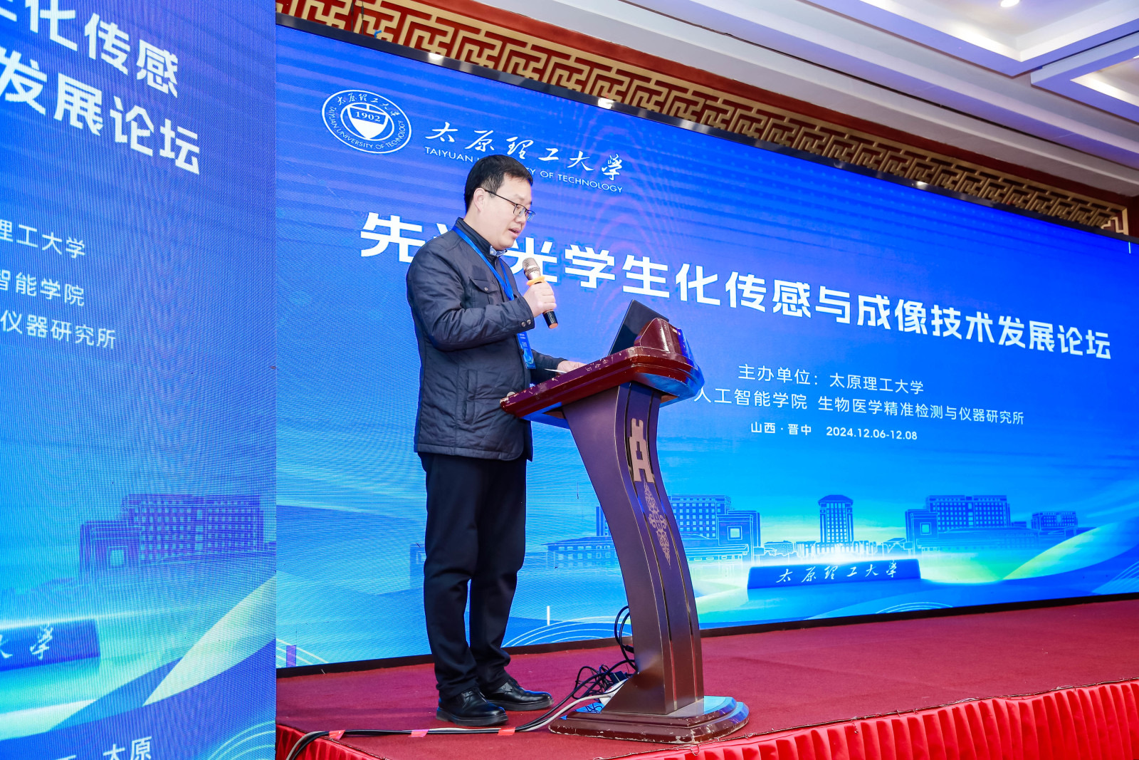 12月6日至8日,由我校主办,人工智能学院生物医学精准检测与仪器研究所承办的“先进光学生化传感与成像发展论坛”在太原举行。此次论坛邀请了18位来自北京大学、南开大学、北京理工大学、海南大学、华中科技大学、南方科技大学、华南师范大学等全国知名高校、科研院所的包括国家重点研发计划首席科学家、国家优秀青年基金获得者等业内权威专家进行学术报告。科学技术研究院副院长马清亮出席开幕式。南开大学孔勇发教授担任论坛主席,人工智能学院副院长李晓春教授担任执行主席,相关专业20余名师生代表参会,人工智能学院党委书记吕晓勇主持开幕式。