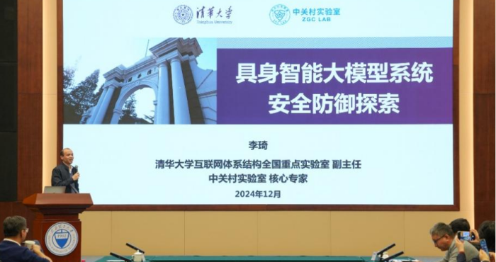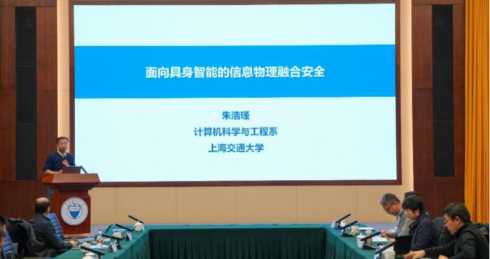 开幕式结束后,特邀报告环节由中国科学院信息工程研究所二级研究员孙利民主持。中国科学技术大学计算机科学与技术学院执行院长、信息智能学部执行部长、ACM Fellow、IEEE Fellow、国家杰出青年基金获得者李向阳教授分享了题为《“数据+知识”驱动的多维协同工业智能初探》报告。上海交通大学电子信息与电气工程学院副院长、国家杰出青年基金获得者、IEEE Fellow朱浩瑾教授分享了题为《面向具身智能的信息物理融合安全》报告。浙江大学可信人工智能研究中心主任、教育部长江学者纪守领教授分享了题为《人工智能安全:从算法安全到具身智能安全》报告。清华大学互联网体系结构全国重点实验室副主任、中关村实验室核心专家李琦副教授分享了题为《具身智能大模型系统安全防御探索》报告。