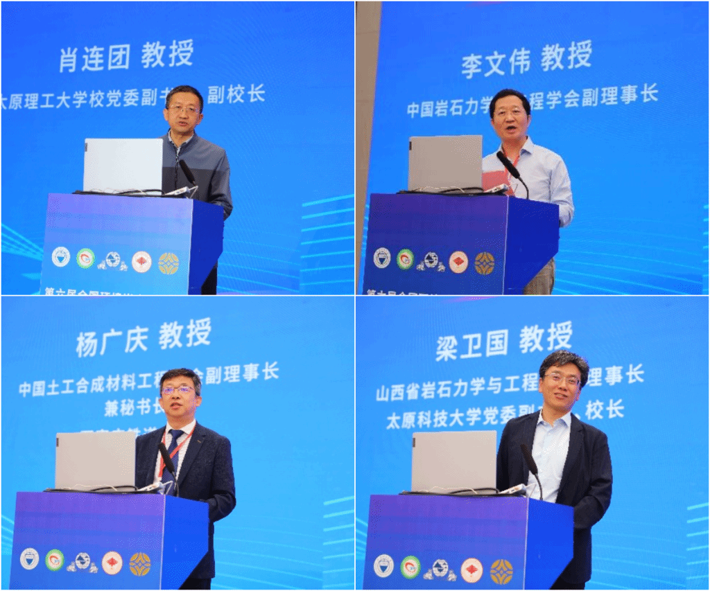 会议开幕式由我校研究生院院长董晓强教授主持。我校党委副书记、副校长肖连团教授,中国岩石力学与工程学会副理事长李文伟教授,中国土工合成材料工程协会副理事长兼秘书长杨广庆教授,山西省岩石力学与工程学会理事长梁卫国教授分别进行致辞,对与会代表的到来表示诚挚欢迎,并对环境岩土工程与土工合成材料的前景寄予厚望,为学术论坛拉开了序幕。