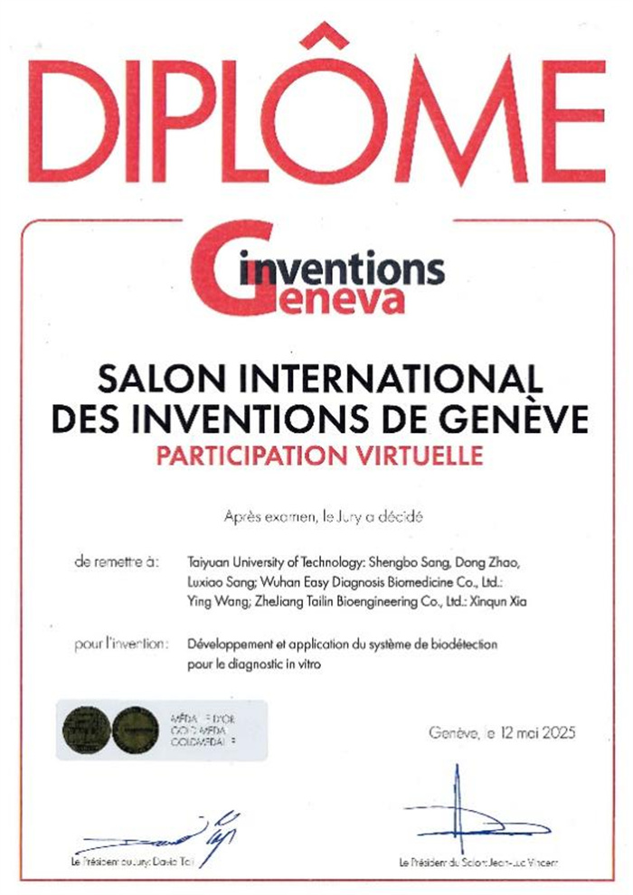 2025年4月,在瑞士举行的第50届日内瓦国际发明展(International Exhibition of Inventions Geneva)上,由国产亚洲精品美女久久久_99久无码中文字幕一本久道_亚洲成AV人影院_亚洲AV影院一区二区三区 狠狠躁夜夜躁人人爽天天不卡_国产激情久久久久影院老熟女_精品性高朝久久久久久久人工智能微纳传感山西省重点实验室与武汉明德生物科技股份有限公司、浙江泰林生物技术股份有限公司联合研发的“体外诊断生物传感系统的创制与应用”成果,在全球40多个国家及地区超过1000个参展项目中脱颖而出,荣获金奖,实现学校在国际顶级科技舞台上的新突破。