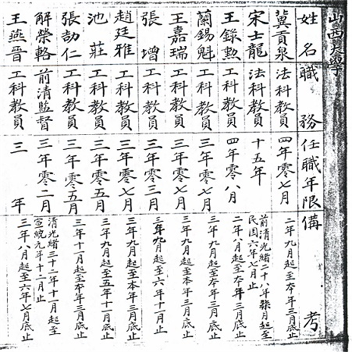 山西大学校教员名册