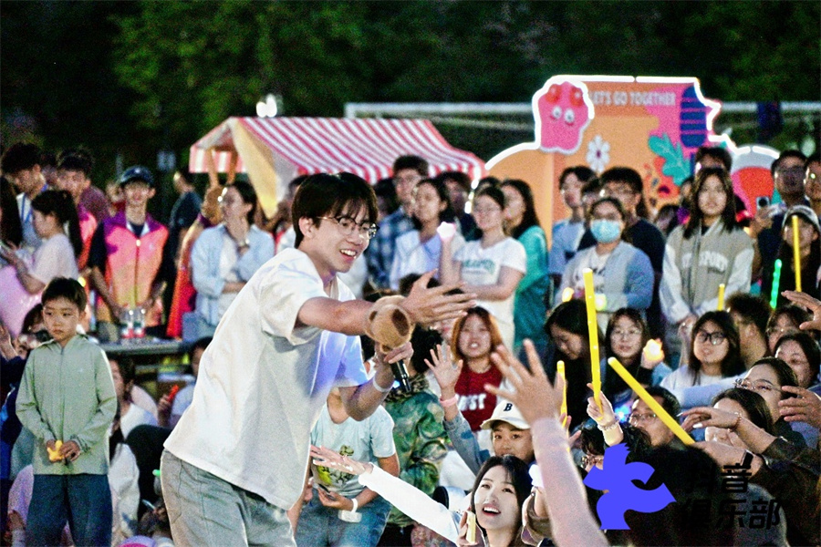 荧光棒和手机闪光灯汇成流动的星河,合唱《凤凰传奇串烧》响彻夜空,观众席间激情跟唱,将活动氛围推向高潮,充分展现了校园音乐节的活力与情怀。