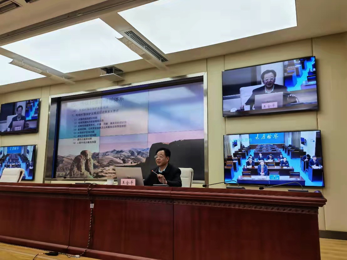 部院签约仪式后,王金平通过电视电话会议的方式向山西省、市、县三级人民检察院公益诉讼部门全体人员就传统村落保护进行专题授课,以推动传统村落保护专项行动深入开展,切实提升法律监督实效。王金平分别从传统村落的保护、历史文化名镇(村)的保护、传统村落的功能复兴等三个方面进行讲授,为办好传统村落保护相关公益诉讼案件,注入了更多的人文情怀,增强了办理案件的文化自觉。