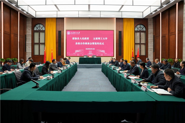 3月12日,我校与清徐县人民政府在明向校区鹏飞会堂举行校县合作座谈会,并签署战略合作协议,深化校县合作,共谋发展新篇。校党委副书记、副校长(主持行政工作)孙宏斌,校党委常委、副校长任喜莹;清徐县委副书记、县政府党组书记、县长、清徐经济开发区党工委书记李福贵,清徐经济开发区党工委副书记、管委会主任陈晓勇,清徐县委常委、县政府党组成员、副县长吴宇平,清徐县委常委、组织部部长、县委党校校长杨红梅,以及清徐县相关单位负责人,我校相关部门(单位)负责人出席座谈会暨签约仪式。仪式由任喜莹主持。