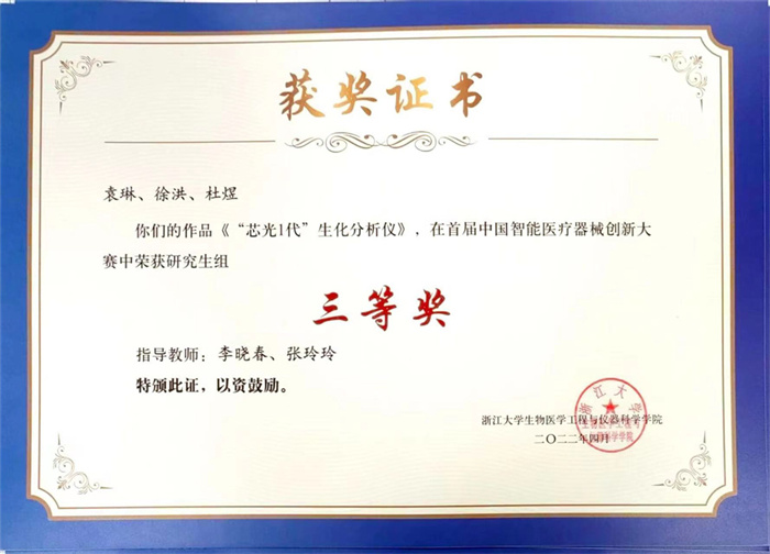 生物医学工程学院项目获首届中国智能医疗器械创新大赛三等奖