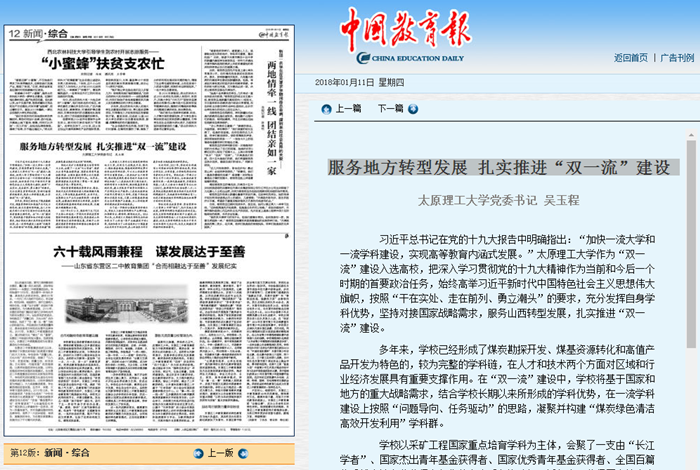 中国教育报:吴玉程——服务地方转型发展 扎实推进“双一流”建设