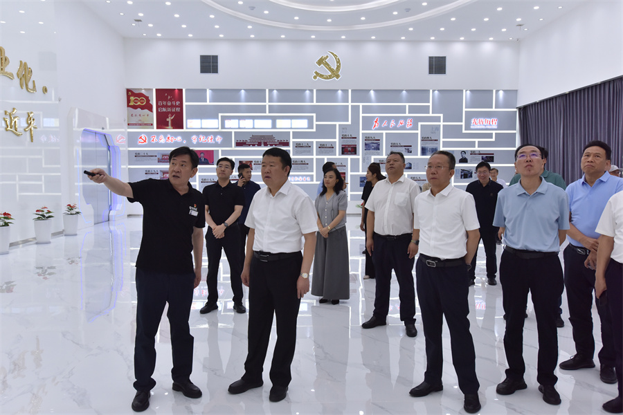 在山西晋城钢铁控股集团有限公司,沈兴全一行参观了智慧党建展厅、智能管控中心和冷轧薄板车间,听取企业负责人关于公司情况的介绍,细致了解企业的生产流程、技术创新难点以及未来发展规划。沈兴全表示,晋钢作为行业内重要企业,一直致力于高端板材等钢铁产品的研发与生产,希望双方今后进一步加强交流合作,探索通过共建实习实训基地和钢铁产业研究院等多种形式,携手攻克行业技术难题,为在校大学生提供更多实践机会,努力实现人才培养与企业需求的无缝对接。